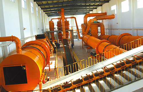 The production process of Jiangsu Pengfei Group's compound fertilizer production line is usually divided into: raw material batching, raw material mixing, raw material granulation, particle drying, particle cooling, particle grading, finished film, and finished packaging. The compound fertilizer production line of Jiangsu Pengfei Group has the characteristics of low investment and good economic benefits. The layout of the complete equipment process is compact, scientifically reasonable, and technologically advanced. Energy saving and consumption reducing, no discharge of three wastes, stable operation, reliable operation, and convenient maintenance. Wide adaptability of raw materials, suitable for granulation of various raw materials such as compound fertilizers, pharmaceuticals, chemicals, and feed, with high granulation rate of products. Capable of producing various concentrations and types of compound fertilizers (including organic fertilizers, inorganic fertilizers, biological fertilizers, magnetized fertilizers, etc.).